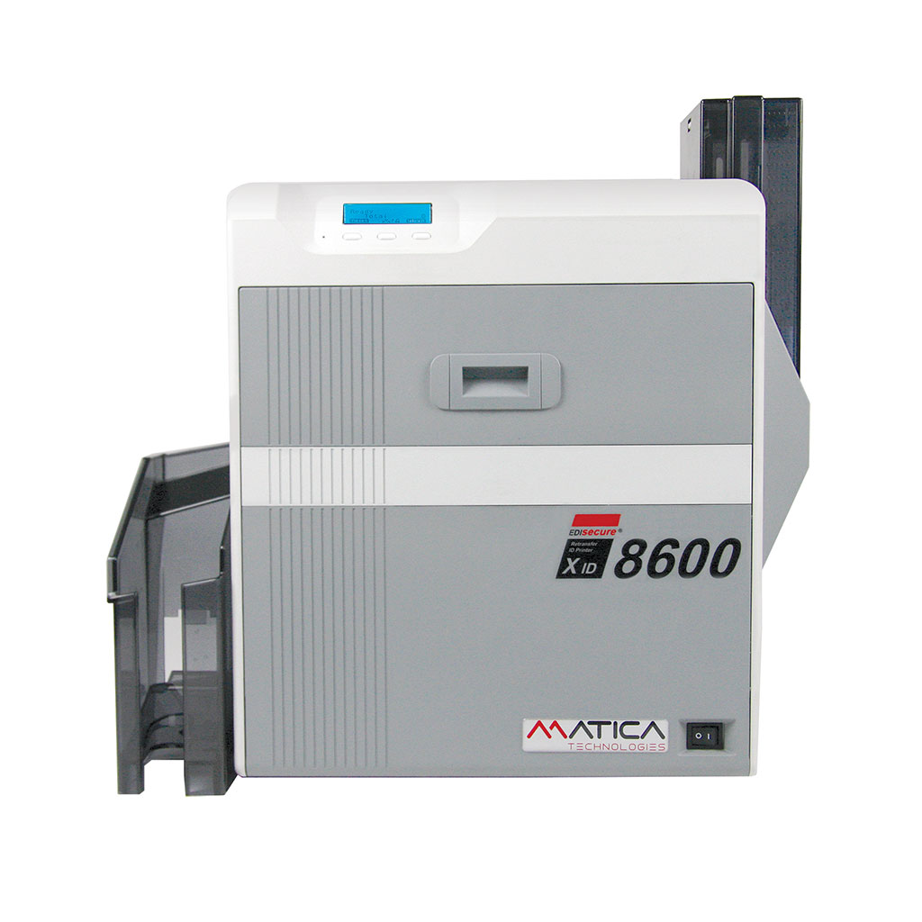 Der Matica XID8600 ist ein hochwertiger Drucker, der sich perfekt für anspruchsvollste Ausweisprogramme eignet, die hochaufl ösenden und hochsicheren Druck erfordern. Sein 600-dpi-Druckkopf liefert hervorragende Bildqualität in Kombination mit Sicherheitsdruck, einschließlich Mikrotext und verdecktem UV-Druck zur Erhöhung der Anzahl visueller Sicherheitselemente (VSEs) auf der Karte.